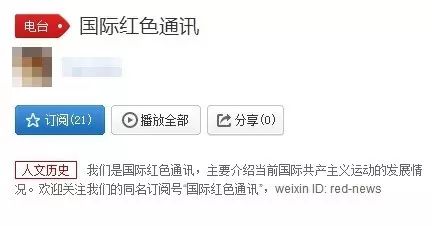”国际红色通讯“入驻网易云音乐IRN 2017-01-03 约 121 字 预计阅读 1 分钟 目录 “国际红色通讯”开通网易云音乐电台读者朋友们,我们已在网易云音乐开通电台“国际红色通讯”。电台将播送国际共产主义运动的相关信息,也会播送一些革命音乐。欢迎在网易云音乐客户端搜索并关注“国际红色通讯”。你也可以点击“阅读原文”来订阅我们的电台。