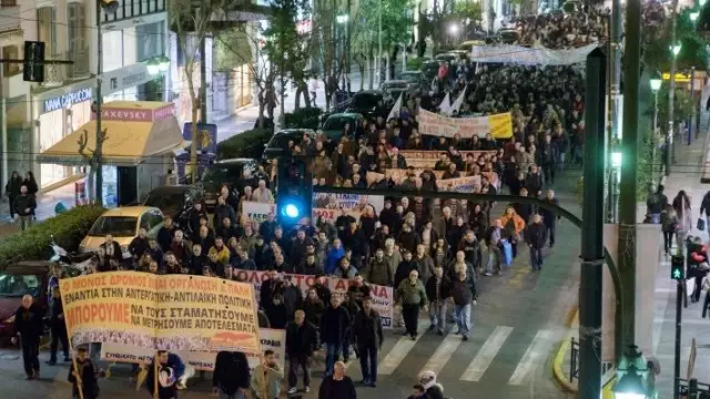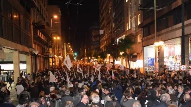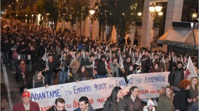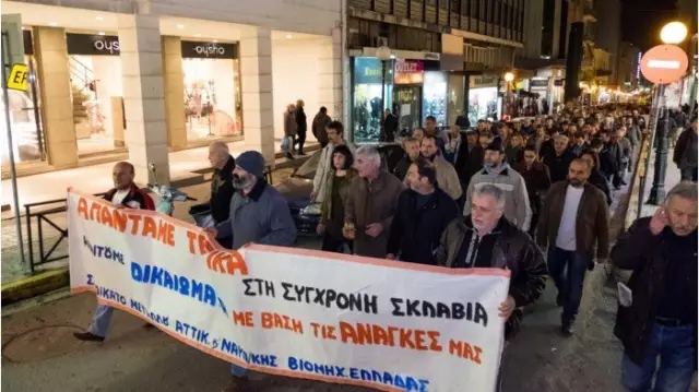 2017年2月21日周二,各工会、行业联合会和劳动中心,在全国范围内举行了示威,抗议最近希腊激进左翼联盟-独立希腊人党联合政府同欧元集团达成的反人民政治路线。