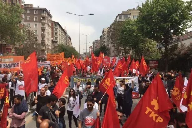 2017年5月1日,在土耳其的伊斯坦布尔、安卡拉、伊兹密尔和阿达那这些大城市,尽管面对着不断加强的紧急措施,数万工人和积极分子仍然涌上街头,举行五一集会,反对剥削,反对好战者,反对宗教原教旨主义的包围。