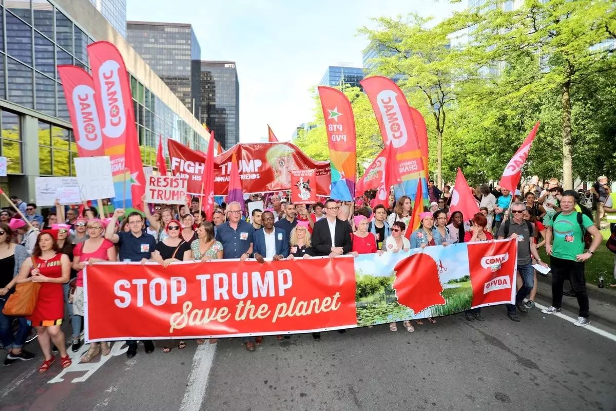 2017年5月24日,超过12000人举行示威。这说明,美国总统唐纳德·特朗普在布鲁塞尔是“不受欢迎”的。他们呼吁希望、社会正义、和平、保卫环境以及多样性之上的团结,以此来反对这位亿万富翁总统的世界观。