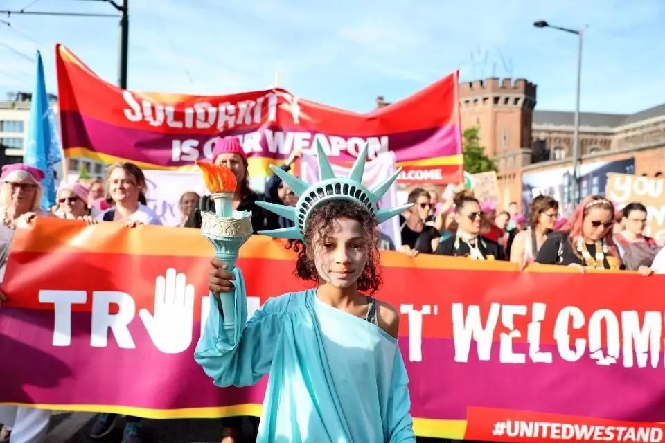 在这次十分丰富多彩的示威活动中,在“我们站在一起”的同一口号下,气候运动、工会运动、女权运动和反种族主义运动团结了起来。“这种对团结的呼吁是非常重要的”,彼得·梅尔滕斯强调,“团结起来,我们就能举起拳头来反对特朗普及其同伙的政策。团结起来,我们就能对抗并打败那些企图鼓吹种族主义和性别歧视来分裂我们的人、牺牲环境利益的人和妄图毁灭全世界的人。今天,我们在这里反对特朗普的到来。在比利时和欧洲,我们还将继续反对他的政策和他在我国的同伙。”