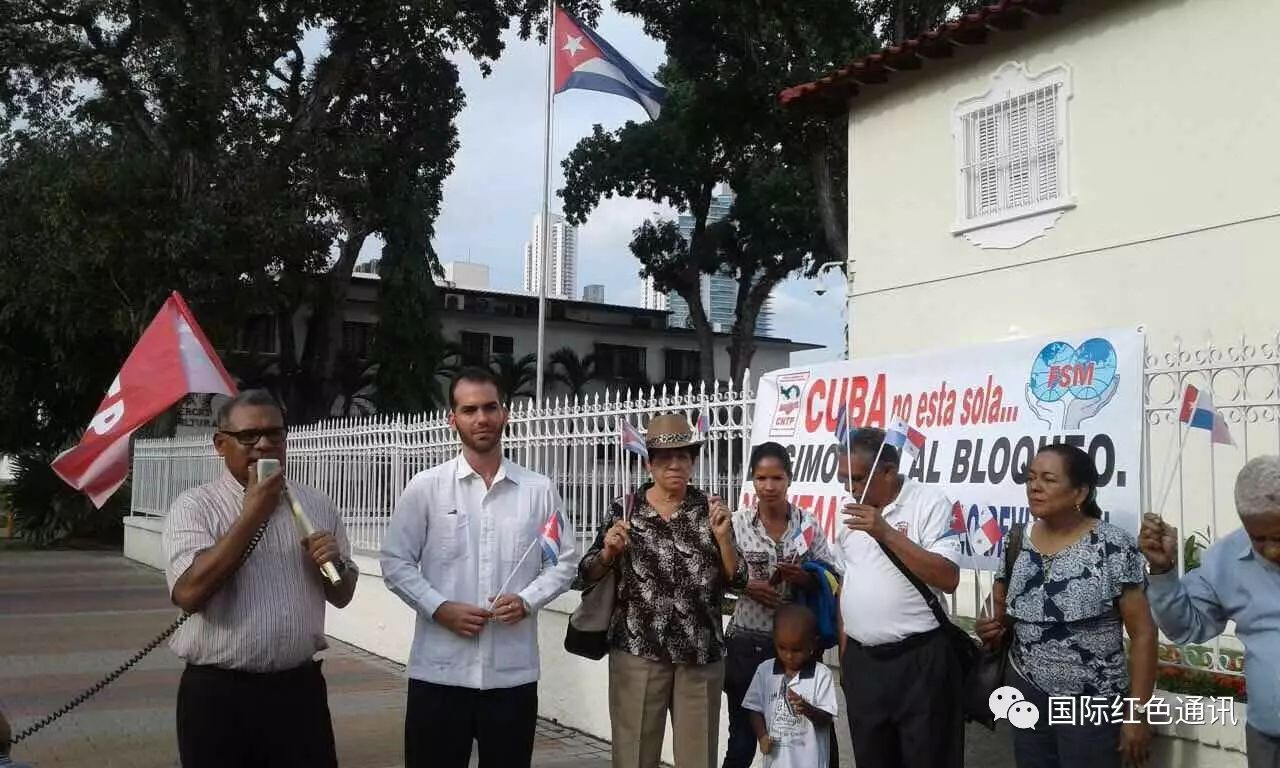 下面是世界工会联合会的会员们在世界各地的古巴大使馆举行活动的照片。