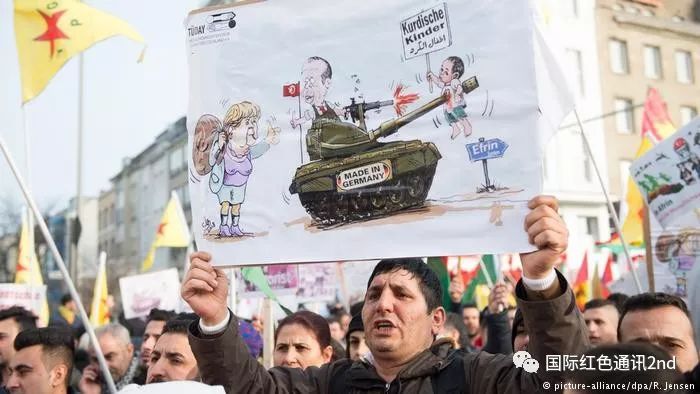 示威者们从全德国各地赶来,反对土耳其对北叙利亚阿夫林的库尔德地区的侵略。