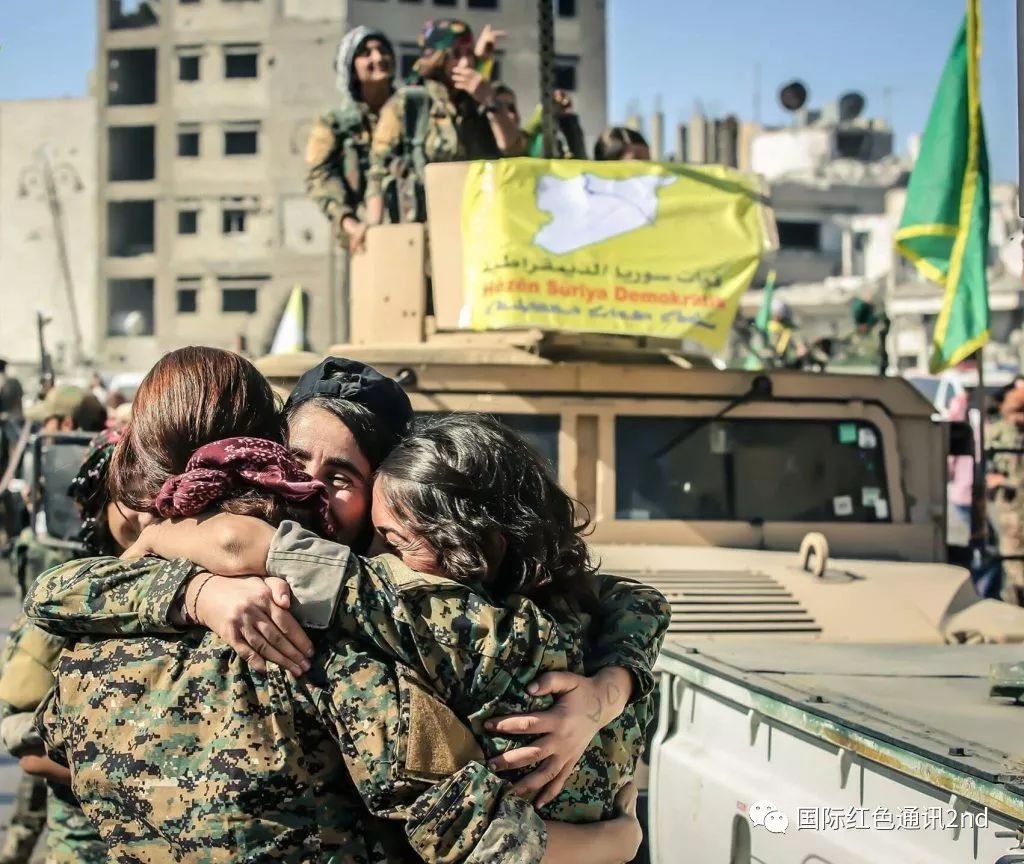 当自杀炸弹袭击者和其他恐怖分子被允许通过土耳其-叙利亚边境,从而对科巴尼(Kobani)发动袭击时,人民保卫军和妇女保卫军顶住了这一风暴,扭转了叙利亚的战局。在反对恐怖主义、为解放和保卫哈塞克(Hasakah)、泰勒艾卜耶德(Tell Abyad)和曼比季(Manbij)而进行的战斗中,他们证明了自己无可估量的价值。
