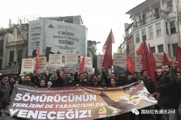 2018年3月6日,在伊斯坦布尔的一个中心城区,土耳其共青团(Communist Youth of Turkey)集会反对北约和美国。这一群众抗议活动,是土耳其共青团近期组织的反帝国主义运动的一部分。土耳其政府只有虚伪的反美话语,而共青团对帝国主义的组织及其区域计划则是零容忍,这使得共青团的抗议活动得到了较多的关注。