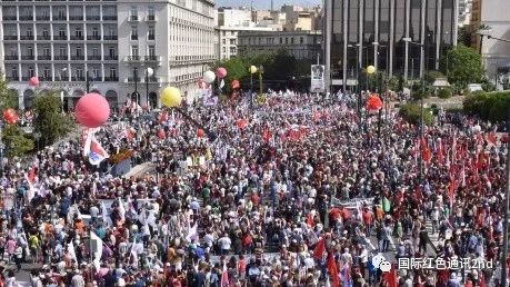 希腊共产党领导的全体工人战斗阵线(PAME)组织了至少7000人举行示威。示威者从议会大厦出发,游行至美国大使馆门前。他们喊着“给叙利亚人民以国际声援”的口号,谴责帝国主义的军事干涉。希腊全体工人战斗阵线的发言人说,“在阶级斗争的道路上,在争取就业权利、工资、养老金、社会权利的斗争中,在反对变更国界、帝国主义战争和干涉的斗争中,工人阶级、人民和孩子们的手中有伟大的力量。”