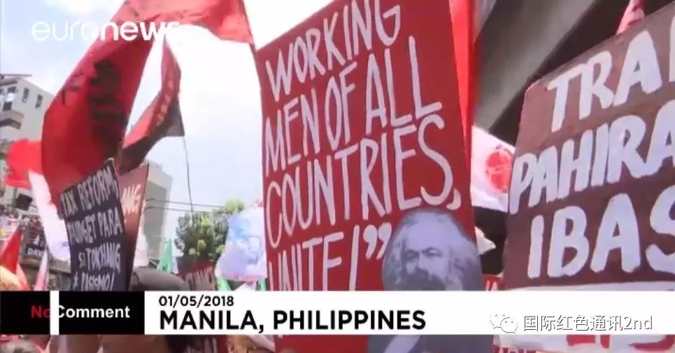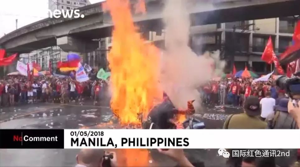 大约5000名工人聚集在总统府门前,抗议对工会的压迫和低工资,并焚烧了罗德里戈·杜特尔特总统的画像。