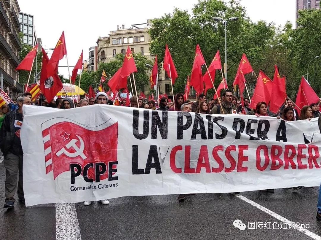 “总罢工”是今年五一节的最大口号。西班牙人民共产党(Communist Party of the Peoples of Spain)的口号是“为了工人阶级的国家”,西班牙共产党(Communist Party of Spain)的口号是“有尊严的工作,为了有尊严的生活。”