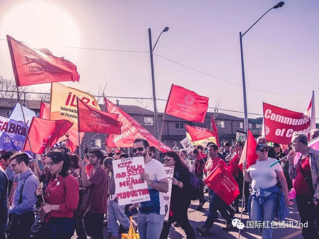 在多伦多,加拿大共产党(Communist Party of Canada)在“团结起来反对资本主义、帝国主义和殖民主义”的口号下举行了游行。党向所有受美国及其北约盟友威胁的国家表示声援。