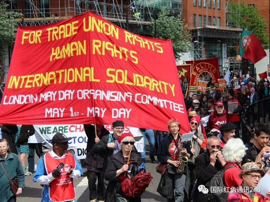 数千人在伦敦市中心举行了集会。根据英国共产党(Communist Party of Britain)《晨星报》的报道,许多人对温德拉什(Windrush)丑闻(译者注:英国内政大臣Amber Rudd涉嫌隐瞒递解非法移民的政策,并因此于4月29日辞职)感到愤怒。大不列颠共产党(马列)(Communist Party of Great Britain - Marxist Leninist)强调,迫切需要加强英国的工人阶级运动。