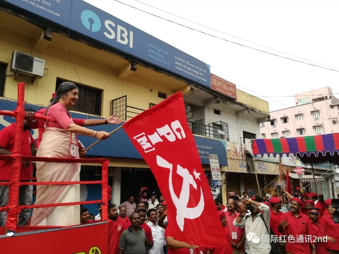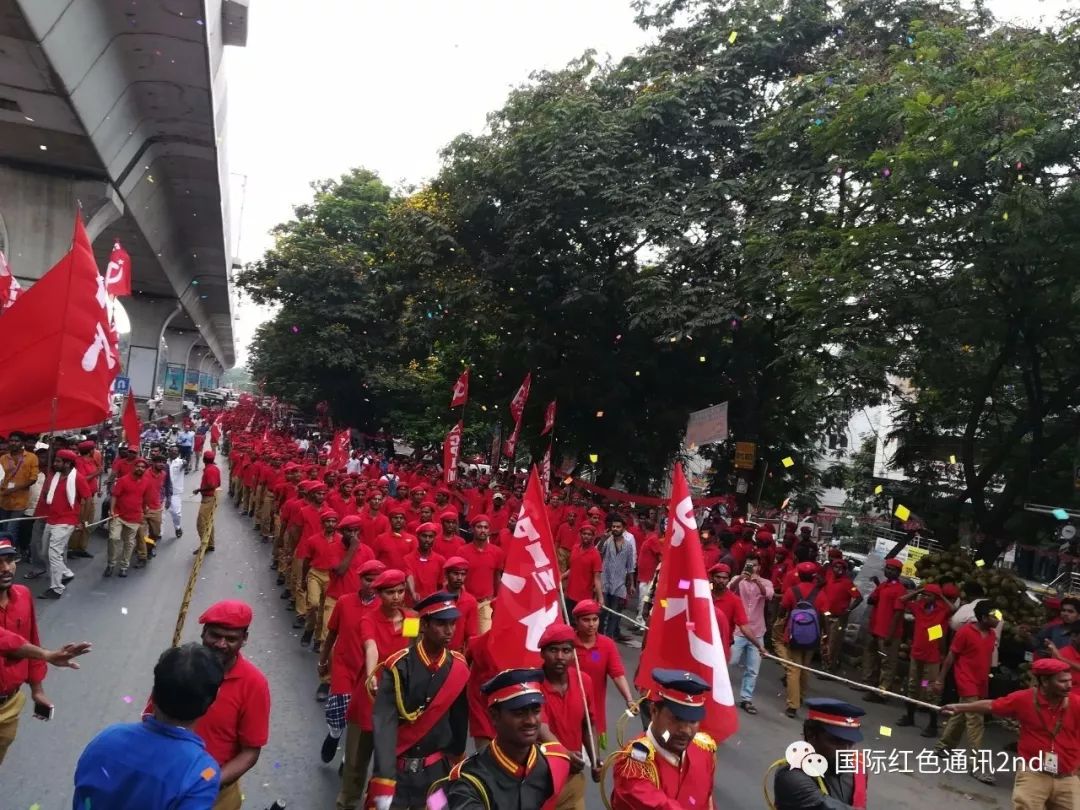 今天,海德拉巴变成了红色的海洋,约有2万人走上街头。他们是去萨如纳伽体育场(Saroor Nagar stadium)参加印共(马)党代会的闭幕式。