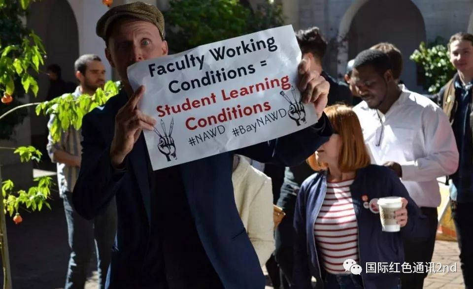 我们是美国的劳动者,教育着作为社会未来的学生。让我们所有人——教师、学生和附属教授们站在一起,联合起来!