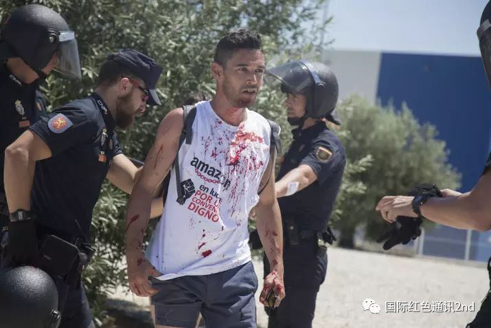 西班牙亚马逊罢工,警察殴打逮捕工人