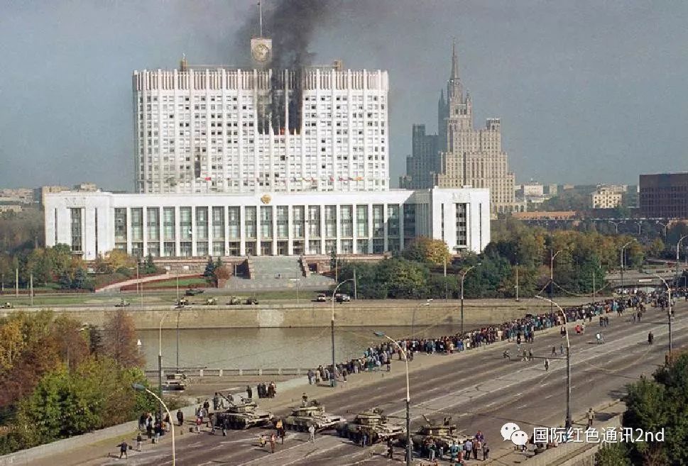 面对反抗,俄罗斯资产阶级犯下了滔天罪行,深刻地暴露了自己的残忍兽性和法西斯面目。任何法律、规则和言语都无法为此辩护。人们被打死打伤,被炮弹炸成碎片,被烧伤,被拷打甚至被强奸……在这场对社会主义支持者的血腥屠杀中,资产阶级证明了,为了保护自己的政权,他们什么事情都干得出来。叶利钦及其爪牙,通过掠夺劳动人民、贱卖国有资产和贪污腐败,赚得盆满钵满,并宣布自己消灭了“共产主义的最后堡垒”。在叶利钦政府的支持下,这些法西斯分子和受他们鼓动的暴徒歇斯底里地叫喊,要“彻底消灭共产主义!”当然,他们的西方“伙伴”也通过国际货币基金组织宣布,只有“继续进行经济改革”,才能贷款给他们。
