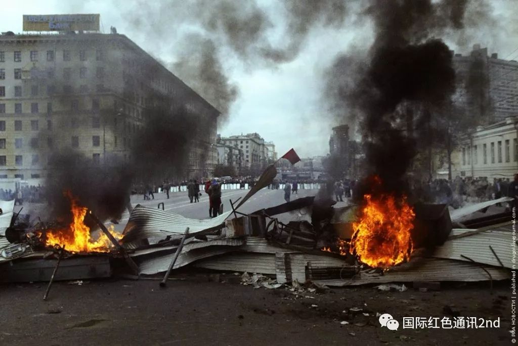 先生们,你们在撒谎,答案早就有了!1993年秋天,为了保卫苏维埃政权的残余,使之不在资本主义的“改革”中被取缔,莫斯科爆发了人民起义。9月21日,叶利钦政府以政变的形式(1400号法令)取缔了最高苏维埃。这时,那些认为自己仍然是苏联人、希望看到自己的社会主义祖国的人们站出来反对叶利钦的政变。从表面来看,苏维埃政权的保卫者们聚集在了最高苏维埃大厦的楼下,这座大厦上飘扬着和克里姆林宫一样的三色旗,大厦里坐着制定资产阶级法律的资产阶级议员。但是这些表面现象并不能决定这场冲突的本质。冲突的深层内容是:反对进一步加强的资产阶级专政,反对强制推行资本主义秩序。