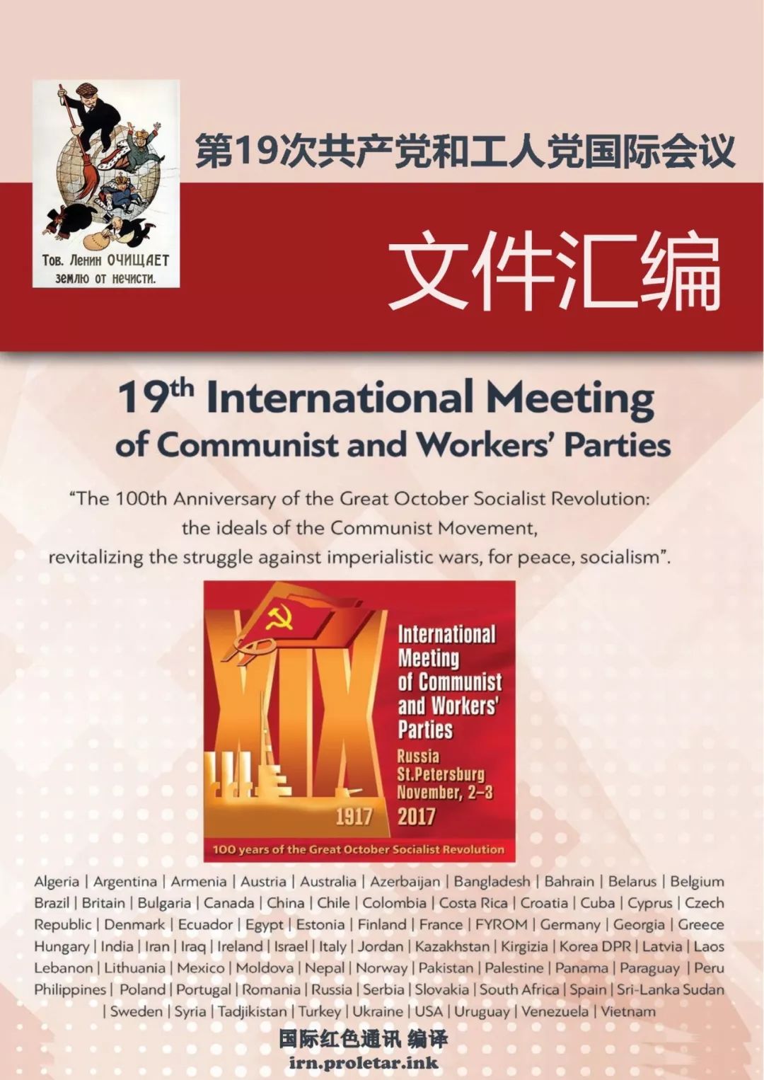 上世纪80年代末、90年代初的苏东剧变,使得国际共产主义运动遭遇了重大挫折。然而,共产主义运动并没有就此灭亡。1999年,各国共产党人在雅典举行了首次共产党和工人党国际会议(以下简称会议)。在经历了十几年的发展之后,会议已经成为国际共产主义运动中的一项重要活动。2017年11月2日至3日,以纪念十月革命100周年为契机,第19次共产党和工人党国际会议在圣彼得堡召开。