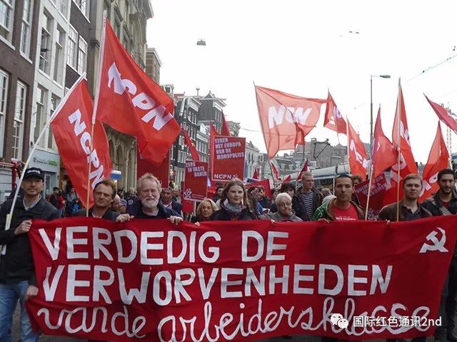 我们想借此机会向各位阐述我国的经济和政治局势。荷兰正处于资本主义的复苏阶段。这种复苏之所以可能,仅仅是因为资产阶级废除了工人阶级和其他阶层人民以前争取到的多项权利。尤其是对工人阶级的青年而言,劳动力市场日益增长的“灵活性”减少了他们找到合适工作的机会,并且使工人阶级所拥有的大部分保障付之东流。另一方面,荷兰正在取消对大型企业的税收,企业通过多种手段提高剥削率的能力得以加强。资产阶级政府正在积极地宣扬资本主义经济增长下“人人都将受益”的口号。