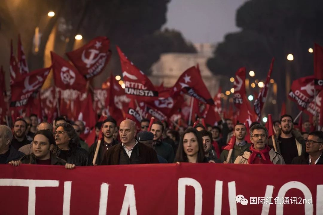 在左翼内部,出现了一个恢复了“意大利共产党 ”历史名称的组织(译者注:即由意大利共产党人党发展而来的新意共 )。在我们看来,它继承了选举主义的特征,这是由它企图“统一左翼”(没有进一步说明)的愿望所推动的。它夸大了贝林格(Enrico Berlingue)的特点,更多地强调了他政治经历中不那么妥协的时刻。它仔细地,甚至带着赞赏地看待中国和金砖五国的经验,并将其视为“国家间阶级斗争”的例子。我们认为,这是对列宁主义的曲解。