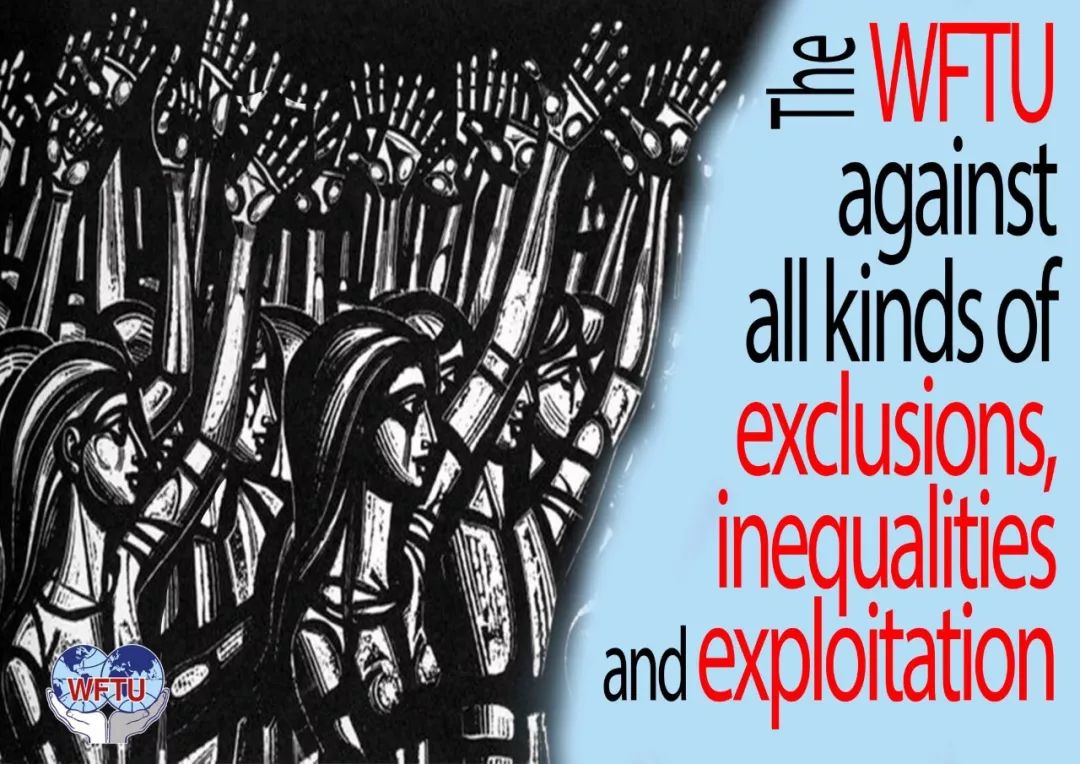 “世界工会联合会反对一切形式的不平等,反对一切形式的剥削。”