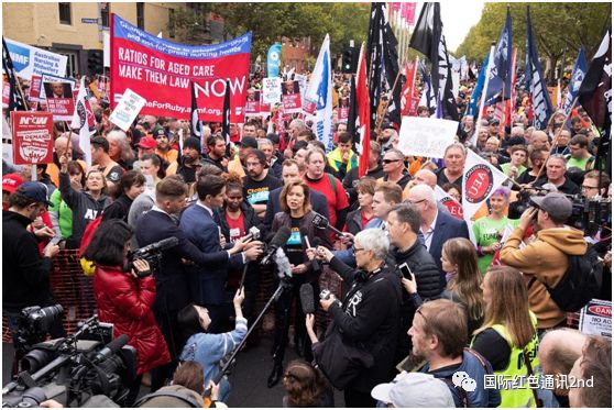 根据CEPU工会通讯部全国主席谢恩·墨菲(Shane Murphy)所说,澳大利亚最大的电信公司澳大利亚电信(Telstra)的6000名工人举行了罢工,反抗老板们强迫工人接受实际工资下降,他们的游行队伍不断壮大。他说:“澳大利亚电信的首席执行官安迪·佩恩(Andy Penn)赚取数百万澳元,却裁剪了数千个岗位,并企图强迫工人接受远低于通货膨胀水平的工资。”