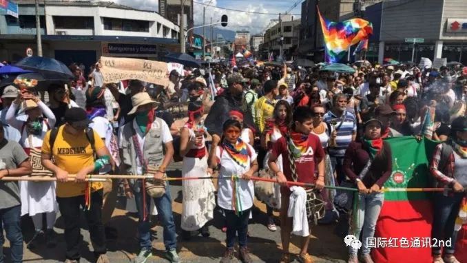 这场前所未有的群众运动,推动了席卷拉丁美洲的热潮。其他国家的反抗影响着哥伦比亚的大罢工。哥伦比亚的罢工者勇敢地举起了安第斯原住民的旗帜,这面旗帜在玻利维亚人民反对美国策划的政变的游行中经常出现。11月21日,智利大规模抗议活动的主题——“压迫者夺走了人民的一切,包括恐惧”——在哥伦比亚各地也得到了表达。