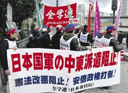 为了响应特朗普政府的要求,安倍政府计划将海上自卫队的舰只和巡逻机派往阿曼湾等海域。这实际上正是日本自卫队试图与美军联合对付伊朗。日本的劳动者和学生们绝不允许日本参加到这场战争中去!全学联的学生们,我们要在全国范围内奋起,阻止自卫队的中东派遣行动!