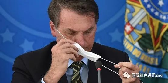 图:巴西总统博索纳罗摘下口罩
