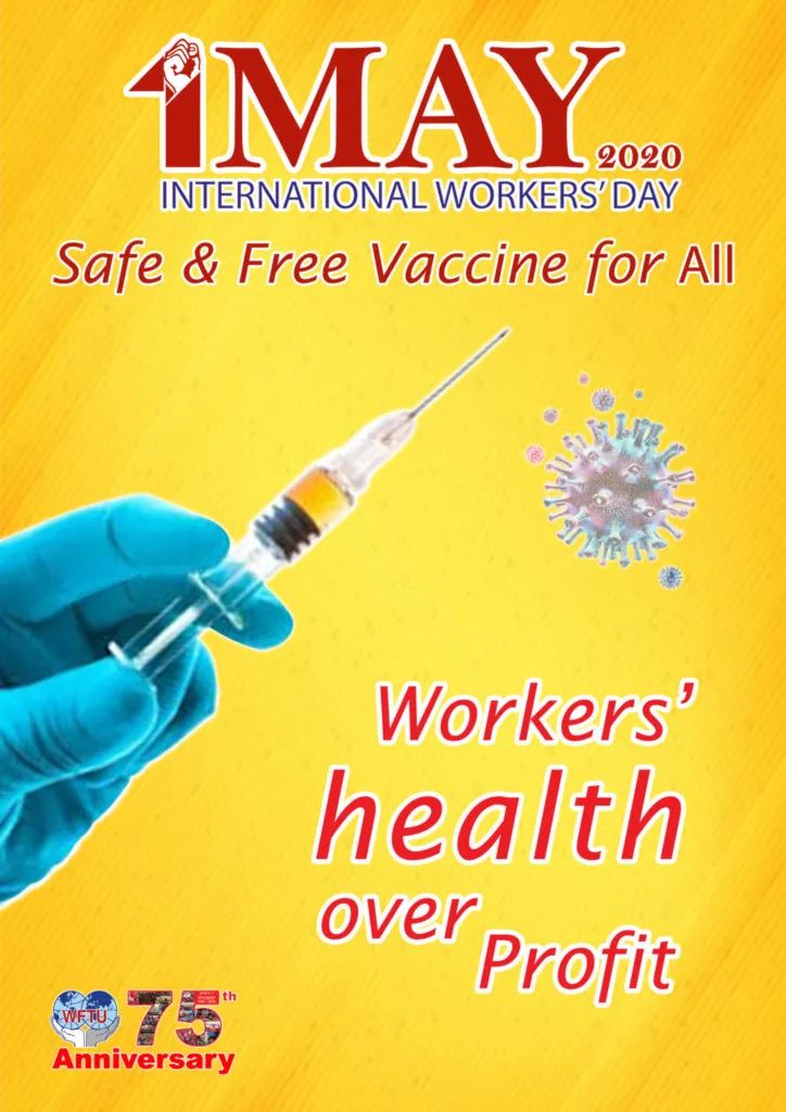 在2020年五一劳动节之际,世界工会联合会(World Federation of Trade Unions)向各大洲的工人致敬。即便在冠状病毒大流行这样的困难条件下,工人们仍然继续工作,不断生产一切必要的产品,使工人和大众阶层的生活能够继续,使他们的需求能够得到满足。