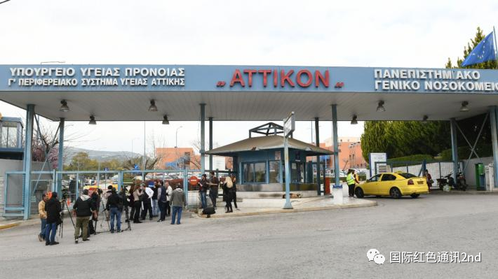 图:“新福音派”医院(“Evangelismos” Hospital)的医生在医院院内集会