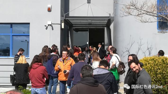 图:拉夫里奥-东阿提卡劳动中心对装卸服务公司瑞士空港公司办公室的干预,原因是该公司前几天解雇了雅典国际机场的数百名员工。
