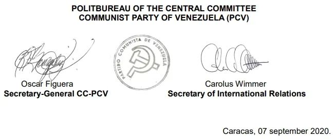 委内瑞拉共产党表示强烈反对对政党的司法干预。我们警告,这种程序侵犯了政党内部民主的执行,侵犯了激进主义对其自身组织的主权,因为它将“政党领导层必须拥护委内瑞拉统一社会主义党”的规定强加给各政党,对委内瑞拉玻利瓦尔共和国宪法规定的民主自由构成了严重威胁。