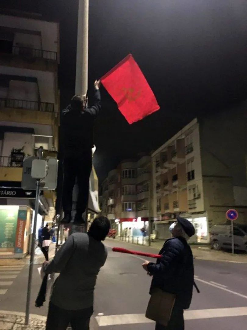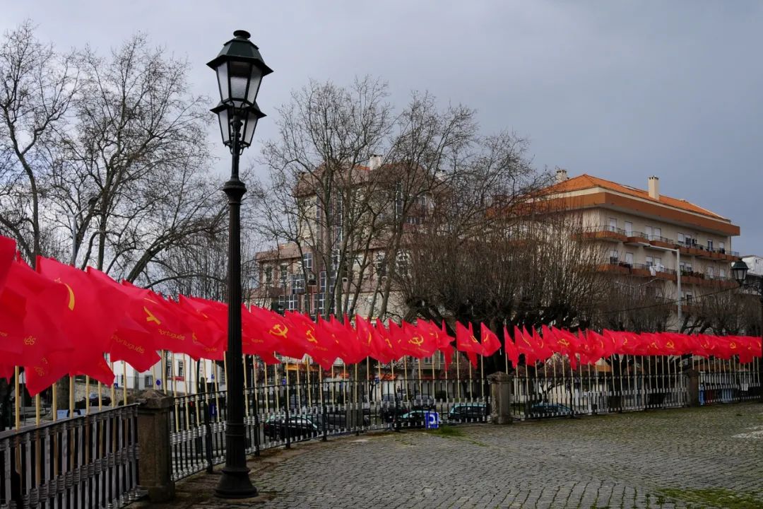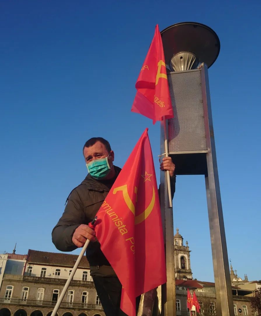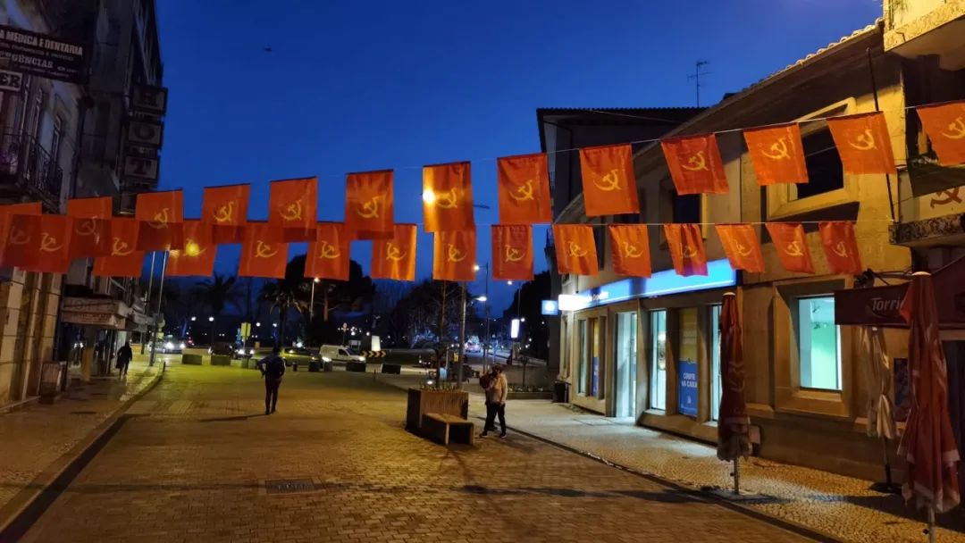 图:葡共百年诞辰前后,葡共党员在各地街头悬挂党旗