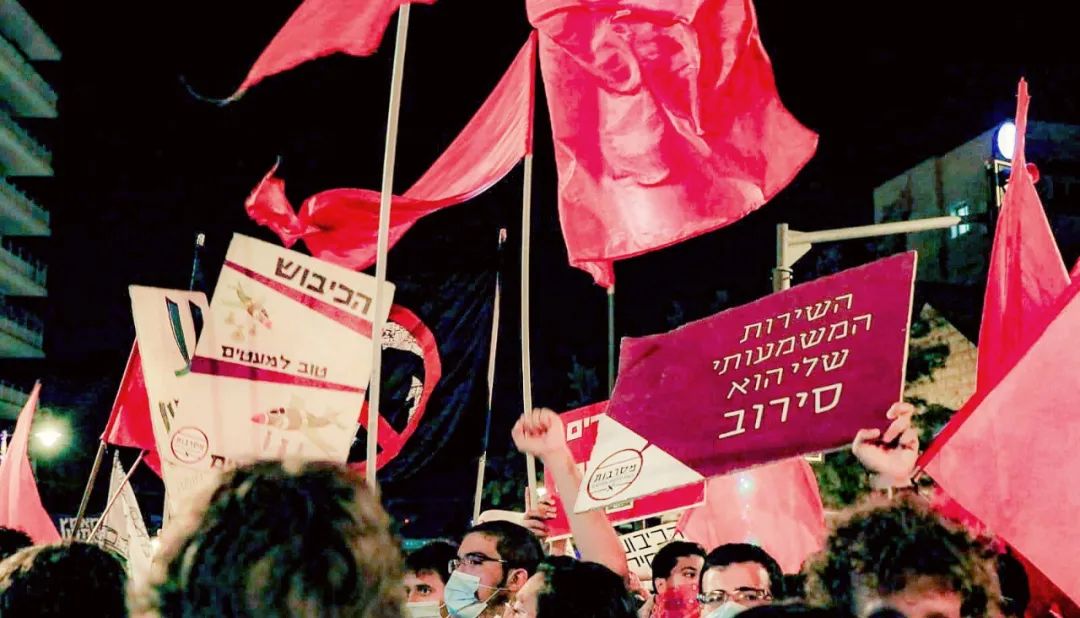图:《十二年级学生的信》的签署者在耶路撒冷参加反对极右翼总理内塔尼亚胡的示威,举着写有“我的重要服务是拒绝”的标语牌。