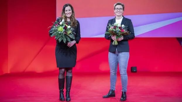 图:德国左翼党新一届共同主席詹妮·威斯勒和苏珊娜·亨尼格·韦尔索
