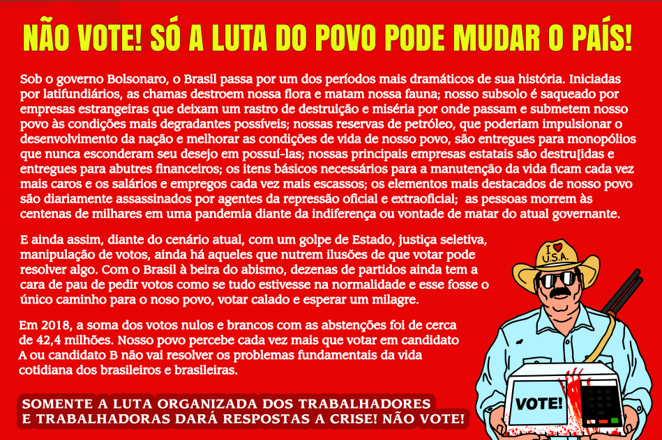 我们深知,这一抵制选举的立场是被数以百万计的已经放弃投票的巴西人民欣然接受的。