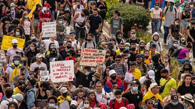 自4月28日以来,成千上万的工人、教师、学生、医生、农民、土著和非洲裔社群、妇女和LGBTQ运动、人权组织和进步政治领导人,为了各自的长期诉求在全国城乡地区行动起来。哥伦比亚各地每天都组织了许多和平示威、路障、静坐、艺术和文化活动和其他抗议活动,人们要求政府解决国家面临的紧迫问题,如新冠疫情导致的社会经济状况恶化、疫苗接种速度缓慢造成的健康危机、通货膨胀和失业率居高不下以及普遍存在的军事暴力。