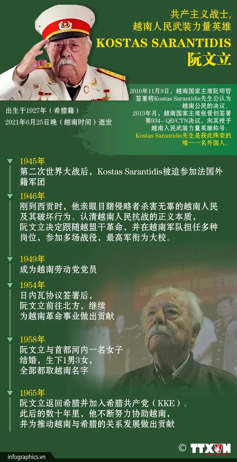 希腊籍国际主义战士、越南人民武装力量英雄萨兰蒂蒂斯(阮文立)逝世