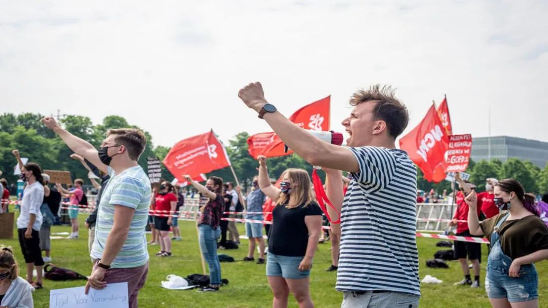 2021年6月3日星期四,荷兰的众多学生团体共同见证了以“非我之过”(#NotMyFault)为主题的全国学生罢课。学生要求政府实行非债务性的基本奖学金制度,对因贷款制度而负债累累的几代学生提供补偿,并保持教育质量。在全国学生会(National Student Union,LSVb)和荷兰工会联合会青年联合组织(FNV-Young&United)等学生和青年团体的号召下,成千上万的学生举行罢课,并在遵守新冠病毒防控措施的情况下参加了海牙的玛利广场(Malieveld)上的示威。荷兰新共产党(New Communist Party of the Netherlands,NCPN。译注:成立于1992年)、荷兰共产主义青年运动(Communist Youth Movement,CJB。译注:荷兰新共产党的青年组织)、社会党红色青年(Red Youth of the Socialist Party)等进步团体也参加了动员活动,声援学生。