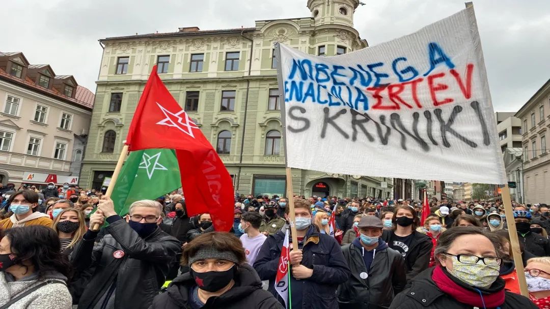 2021年4月27日斯洛文尼亚“抵抗日”(Resistance Day)这一天,斯洛文尼亚各地的进步组织举行了纪念反帝国主义阵线(Anti-Imperialist Front)或斯洛文尼亚人民解放阵线(Liberation Front of the Slovene People)成立80周年的活动。斯洛文尼亚人民解放阵线在第二次世界大战期间曾与法西斯纳粹军队作战。星期二这天,包括斯洛文尼亚左翼党(Levica)在内的反帝国主义组织,在首都卢布尔雅那的议会大厦前组织集会,要求亚内兹·扬沙(Janez Janša。译注:斯洛文尼亚现任总理)领导的现任政府辞职。亚内兹领导的政府一再对文化工作者、非政府组织、知识分子和媒体发起攻击。4月27日“抵抗日”是斯洛文尼亚的法定节假日。