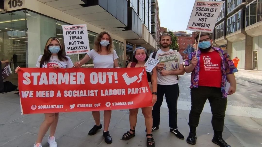 图中标语为:斯塔默(工党现任领导人)滚蛋!我们需要社会主义的工党!去反对保守党,而不是马克思主义者!要社会主义政策,不要“清洗”。
