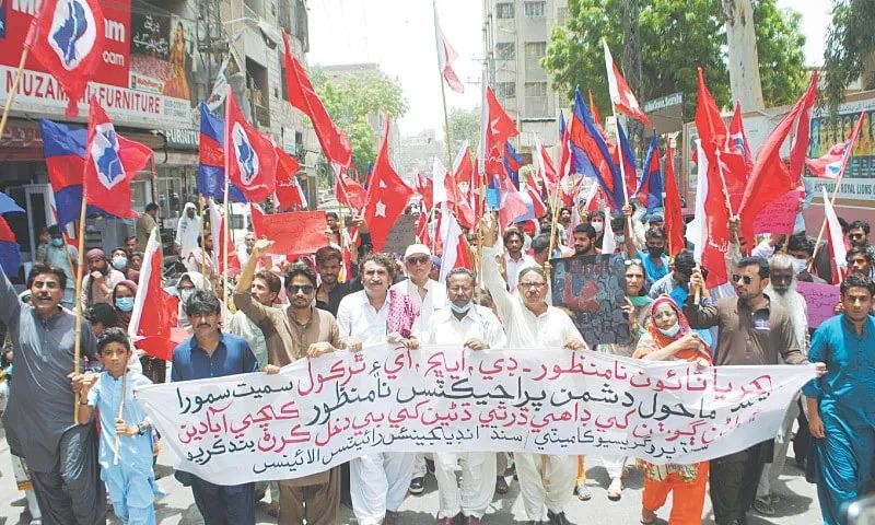 这场抗议活动是人民工人党和信德原住民权利联盟(Sindh Indigenous Rights Alliance)发起的全国行动日的一部分,其目的是反对巴维亚城镇公司和卡拉奇国防区房管局导致原住民流离失所的行为。