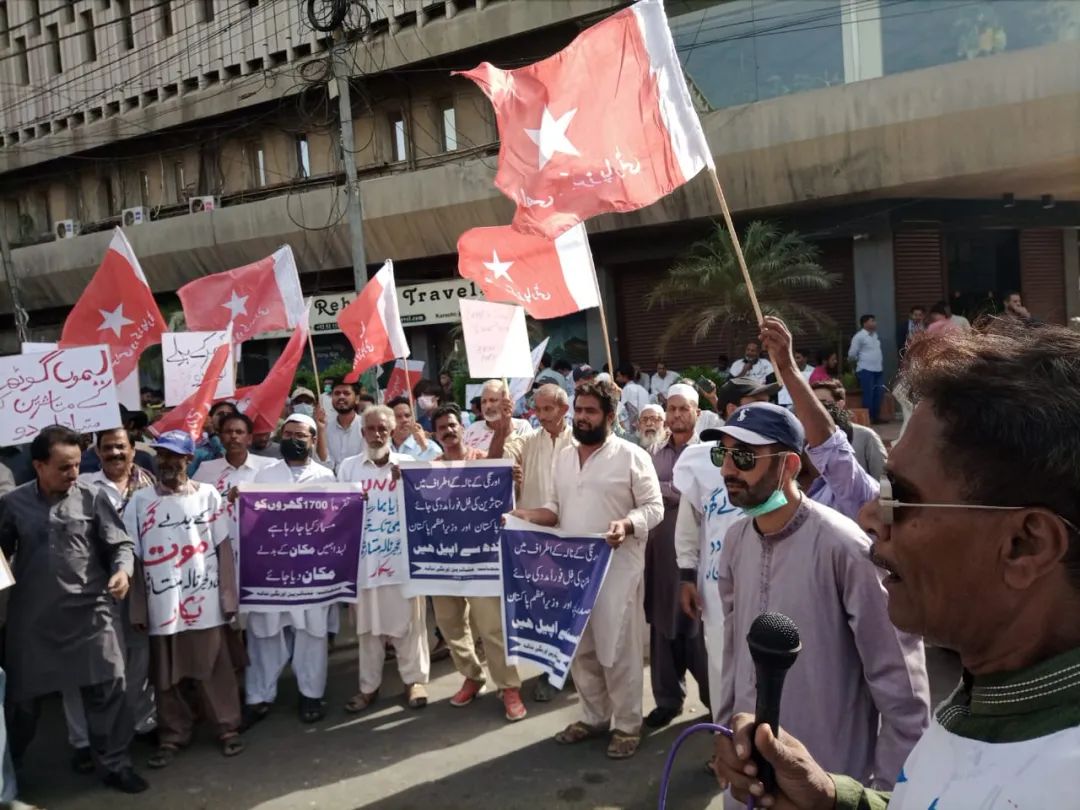 米尔普尔哈斯(MIRPURKHAS):数十名活动家在当地新闻俱乐部外举行示威游行,抗议巴维亚城镇公司、卡拉奇国防区房管局和其他住房项目。