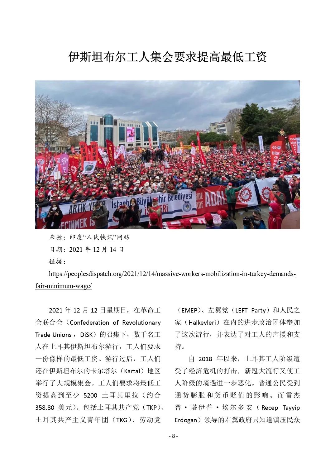 伊斯坦布尔工人集会要求提高最低工资IRN 2022-02-16 约 110 字 预计阅读 1 分钟 目录 原文链接:https://peoplesdispatch.org/2021/12/14/massive-workers-mobilization-in-turkey-demands-fair-minimum-wage/