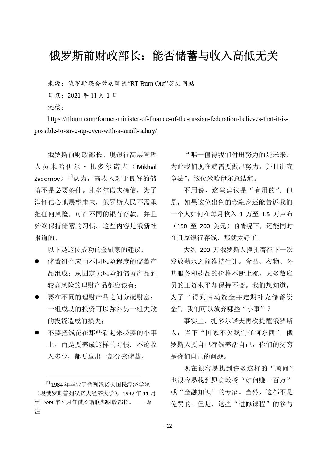 俄罗斯前财政部长:能否储蓄与收入高低无关IRN 2022-02-18 约 142 字 预计阅读 1 分钟 目录 原文链接:https://rtburn.com/former-minister-of-finance-of-the-russian-federation-believes-that-it-is-possible-to-save-up-even-with-a-small-salary/