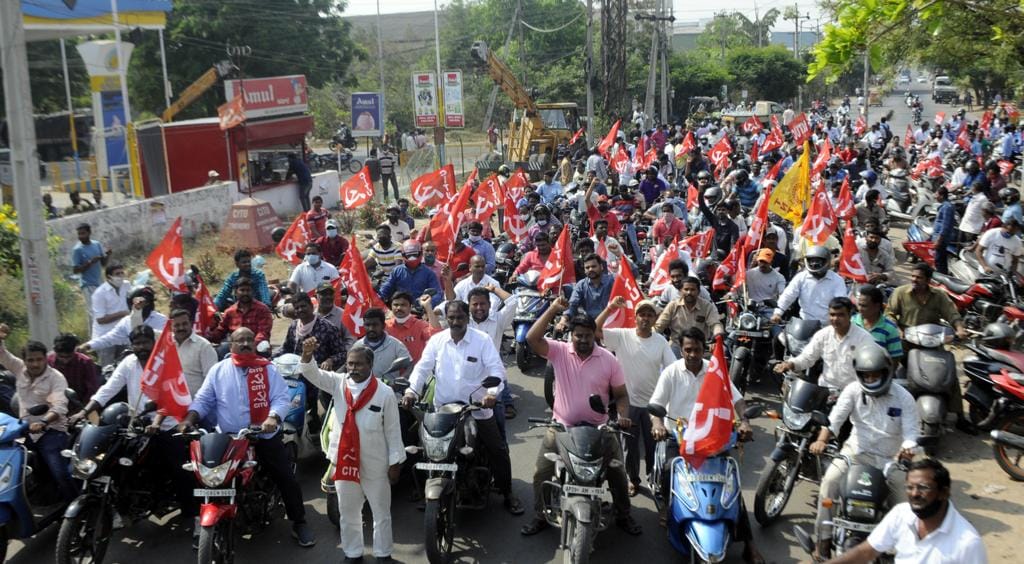 在几个邦,全印度农民联盟(AIKS)和全印度农业工人联盟(AIAWU)的邦、县各级领导人与印度工会中心(CITU)相互协调,在罢工期间制定了共同行动计划。在几乎所有的邦,农民和农业工人都参加了示威以及阻断铁路和公路的行动。在未来的日子里,阶级组织之间的团结和支持必须进一步加强。在这两天里,全印度民主妇女协会(AIDWA)、印度民主青年联合会(DYFI)和印度学生联合会(SFI)的成员也在许多邦参与了示威。