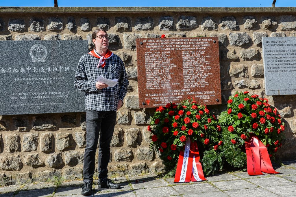 2022年5月15日,奥地利各反法西斯团体举行活动,纪念二战结束时纳粹控制下的位于上奥地利的毛特豪森集中营解放77周年。奥地利共产主义青年团(Communist Youth of Austria (KJO))、青年阵线(Jugend Front)、奥地利抵抗战士与法西斯主义受害者联邦协会(KZ-Verband)、奥地利劳动党(Austrian Party of Labor)、蒂罗尔反法西斯联盟(Federation of Tyrolean Anti-fascists)、奥地利共产党(Communist Party of Austria (KPO))、共产主义学生协会(Communist Student Association (KSV))的积极分子和其他人一起,缅怀奥地利抵抗运动牺牲的英雄和毛特豪森集中营及其周边分营的纳粹恐怖受害者。