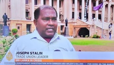 斯里兰卡教师工会(Sri Lanka Teachers Union)总书记约瑟夫·斯大林是5月28日示威的组织者之一。面对该国深重的经济危机,示威者要求政府辞职。